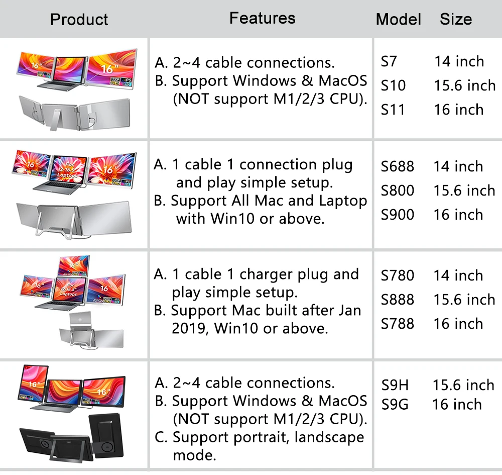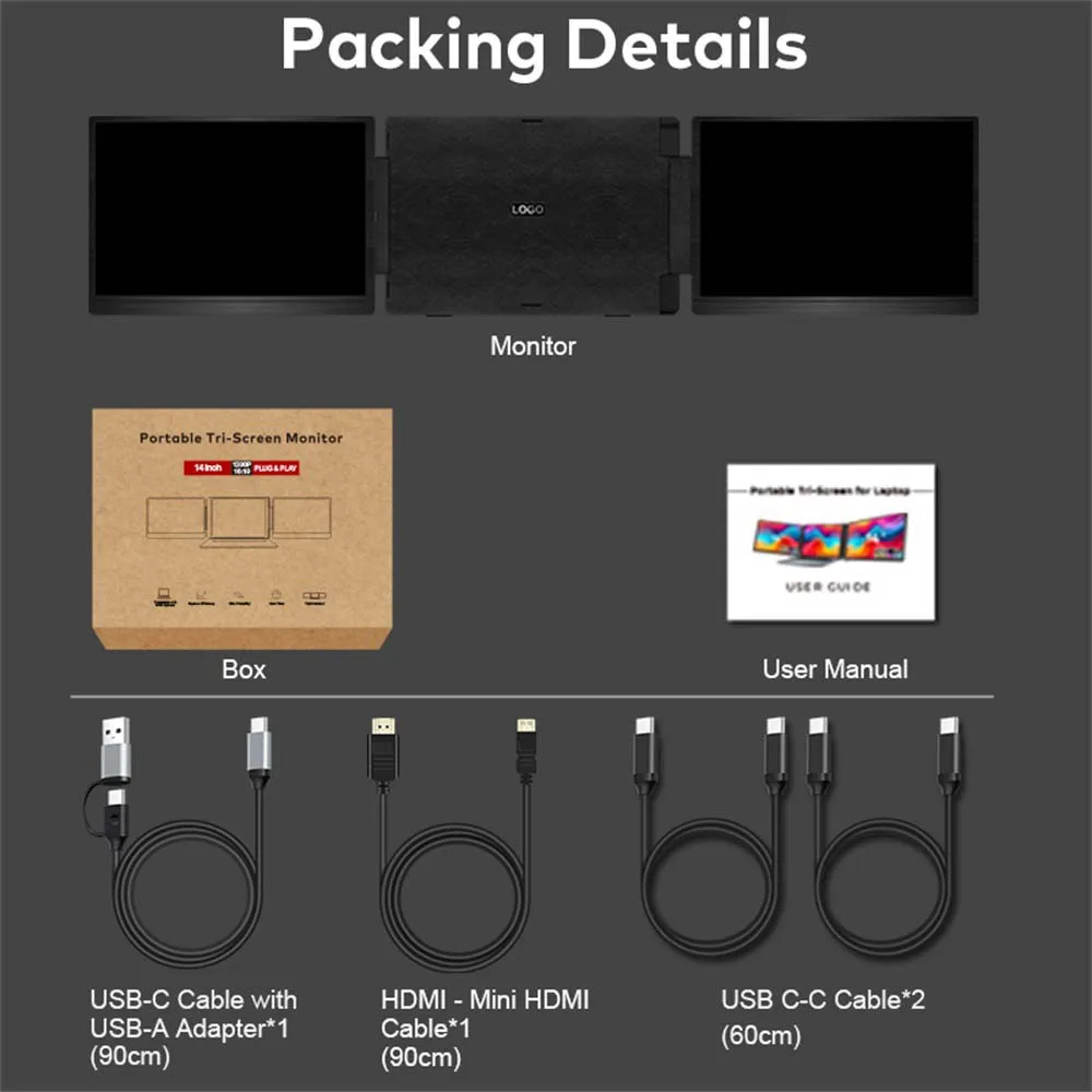 Rospider 14 to 16 Inch Dual Screen Extender Display FHD IPS Triple Expandable Monitor High Definition for Laptop Productivity
